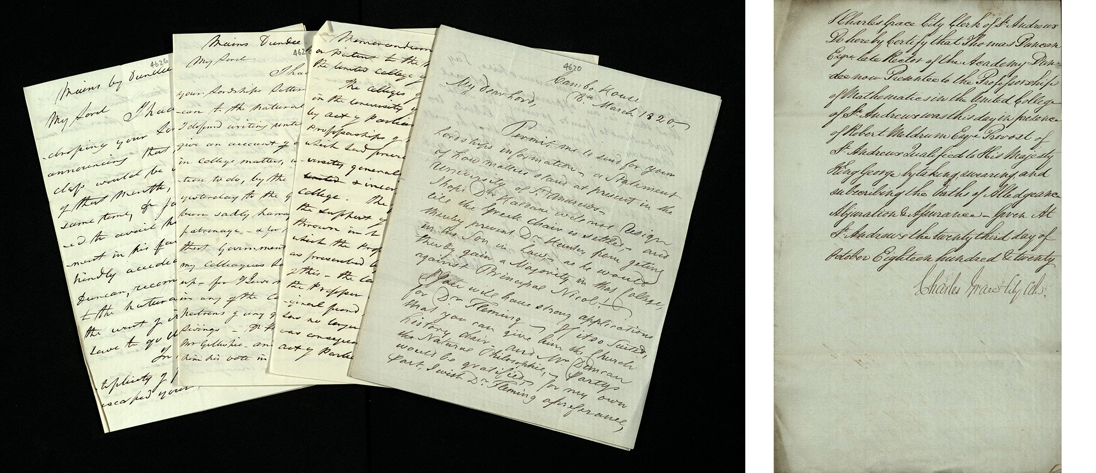 I was also able to find more records than I had expected: a class certificate he wrote out and signed in 1825, a notebook of his lectures attended by William Carmichael McIntosh, and best of all, two photographs of the man himself.