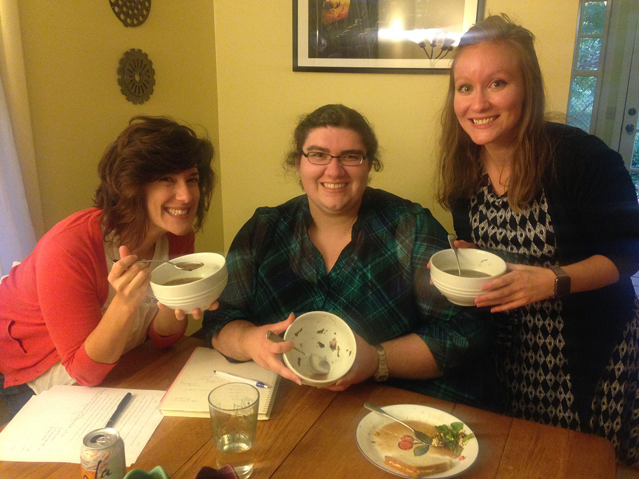 I shared this soup with some of my fellow early modernists at Indiana University, and the brave souls looked past the soup’s poor visual impression to deem it “not inedible,” the highest praise I could coax out of them. I actually found it the most palatable of any of us—which is not to say it’s something I would ever want to eat again—but my colleagues posit that is because I am a vegetarian and used to eating, as one person put it, food that “tastes like a garden.”