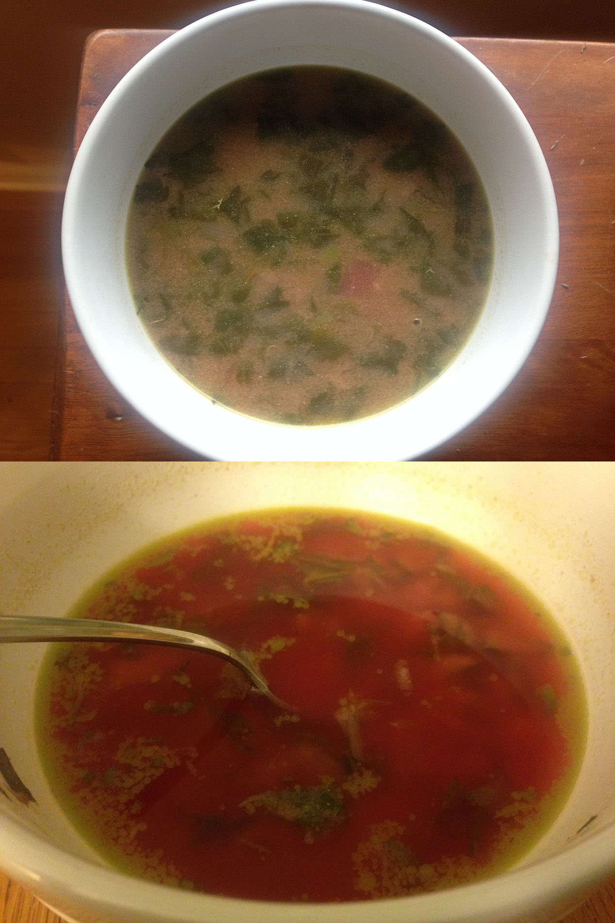 Bottom: The soup began to separate after a few minutes and became even more off-putting