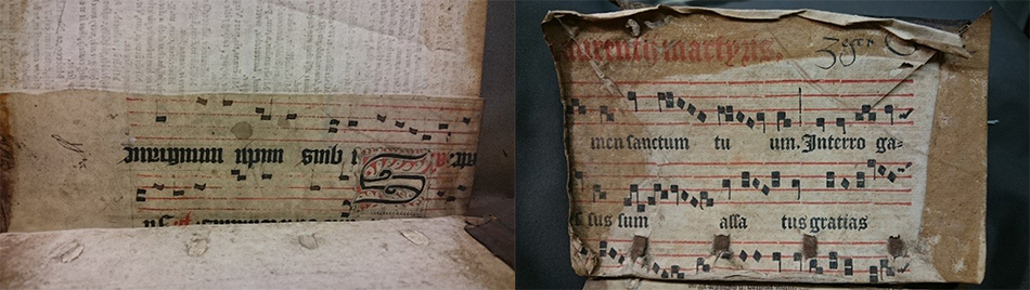 In the 16th century, the Protestant Reformation swept through Europe. This religious upheaval and change in religion might go some way towards explaining why Catholic chant was being discarded to use in book bindings, and as the Reformation began in Germany this may explain why we have found so many fragments within German books of that period. Gregorian Chant music also underwent an aesthetic overhaul, with later pieces published in the late 16th to early 17th century revised what they saw as corrupt and flawed ‘barbarism’ by making the chants conform to contemporary aesthetic standards.