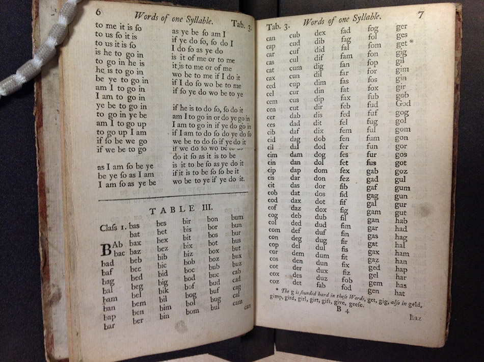 Sproson’s audience, delicately described in his title as those of ‘the meanest capacity’ are clarified to be ‘that province of little people’. His aim was to create for them a text which taught English by a different method than that to which they were used, since ‘the long and the short, the easy and hard words are promiscuously jumbled together […] in all our primers and spelling-books, how can the entrance to learning be said to be easy?’