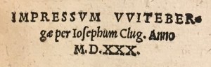 The Praefatio nova in St Andrews is the earliest known edition of Justus Jonas’ Latin translation of Luther’s preface. Although it does not list a printer, by comparing aspects of its material bibliography, we are able to identify it as the work of Josef Klug, one of the leading printers in Reformation Wittenberg.