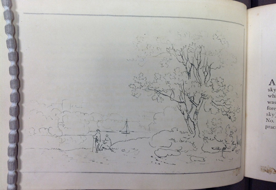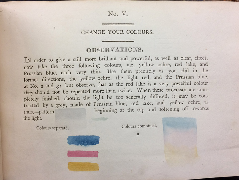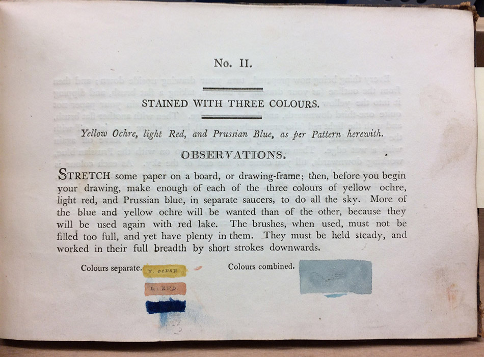 Among the beautiful illustrations of the art books in the Special Collections Copyright Deposit Collection, classmark N (Fine Arts), one which stood out was the anonymous The Progress of a Water-Coloured Drawing (c. 1804). The author, who says ‘I shall not add my name to it, for in this country every thing finds its level’, is now known to be the 18th-19th century landscape artist John Laporte, who has a unique and recognisable drawing style which can be seen across his other works.