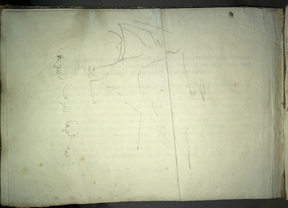At the back of the book meanwhile, another party has drawn some facial profiles. Clearly, a lot of hands have contributed to the art in this book in one way or another!
