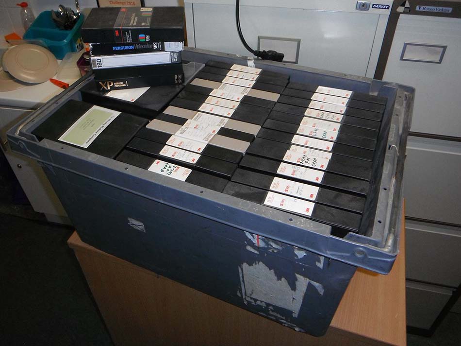 The tapes were offered to us by the staff of our Media Services team, who found them during a clear out. The collection comprised 117 tapes in all, including a (nearly) complete set of master copies of graduation videos from 1990-2000, and some tapes used for teaching purposes. On the whole the tapes were in decent condition, and all had labels explaining their contents – very useful for an archivist!