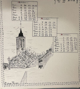 Each year between 1921 – 1924, the students crafted a hand-made calendar featuring pen sketches and watercolours of scenes around St Andrews to present to Miss Dobson. We only have to turn to some scandalous accounts of Raisin Weekend to see that this warden had to deal with her fair share of student high jinks, so these beautiful calendars were certainly a well-earned reward for navigating day-to-day life with these spirited scholars.